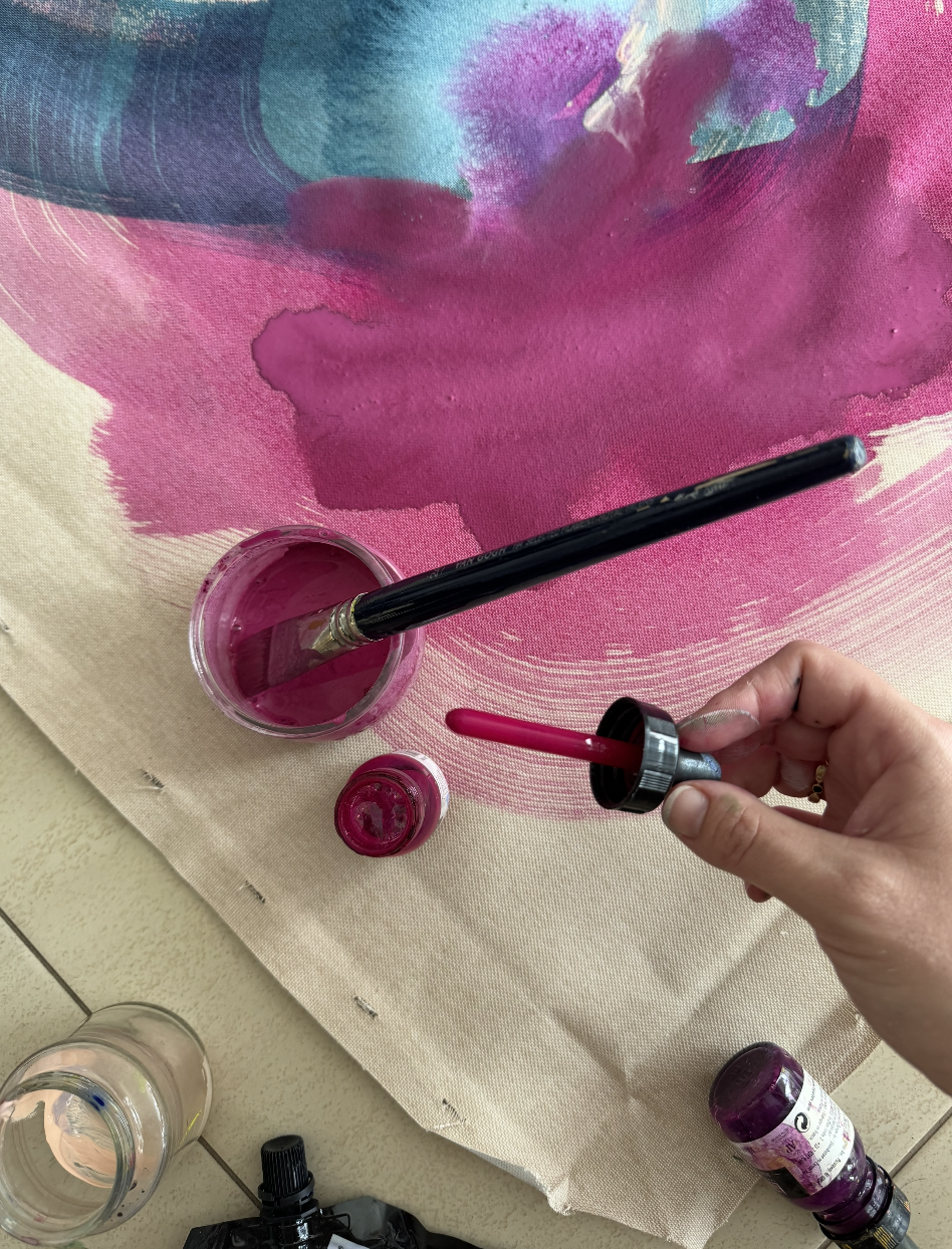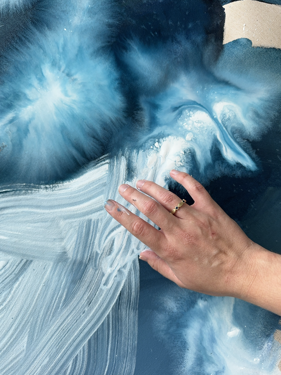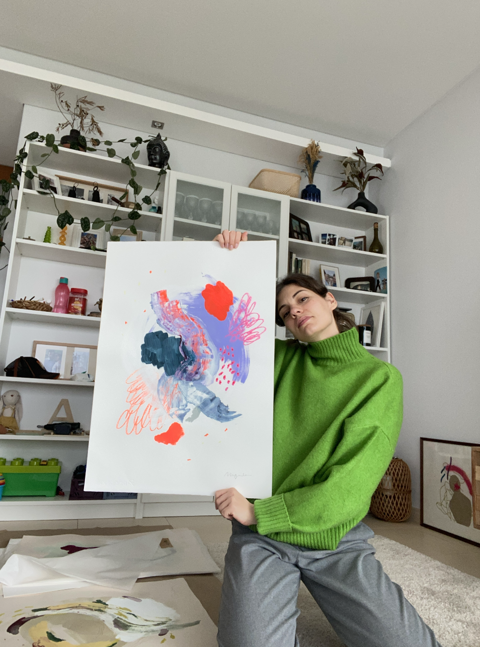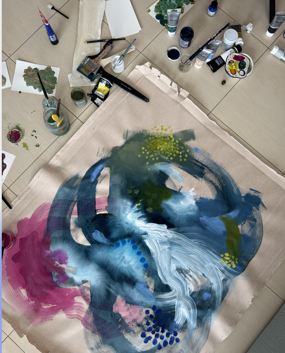 My paintings strike a balance between creative spontaneity and thoughtful design, weaving vibrant palettes and organic forms into every piece.